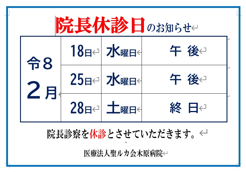 =2月院長休診日のお知らせ=